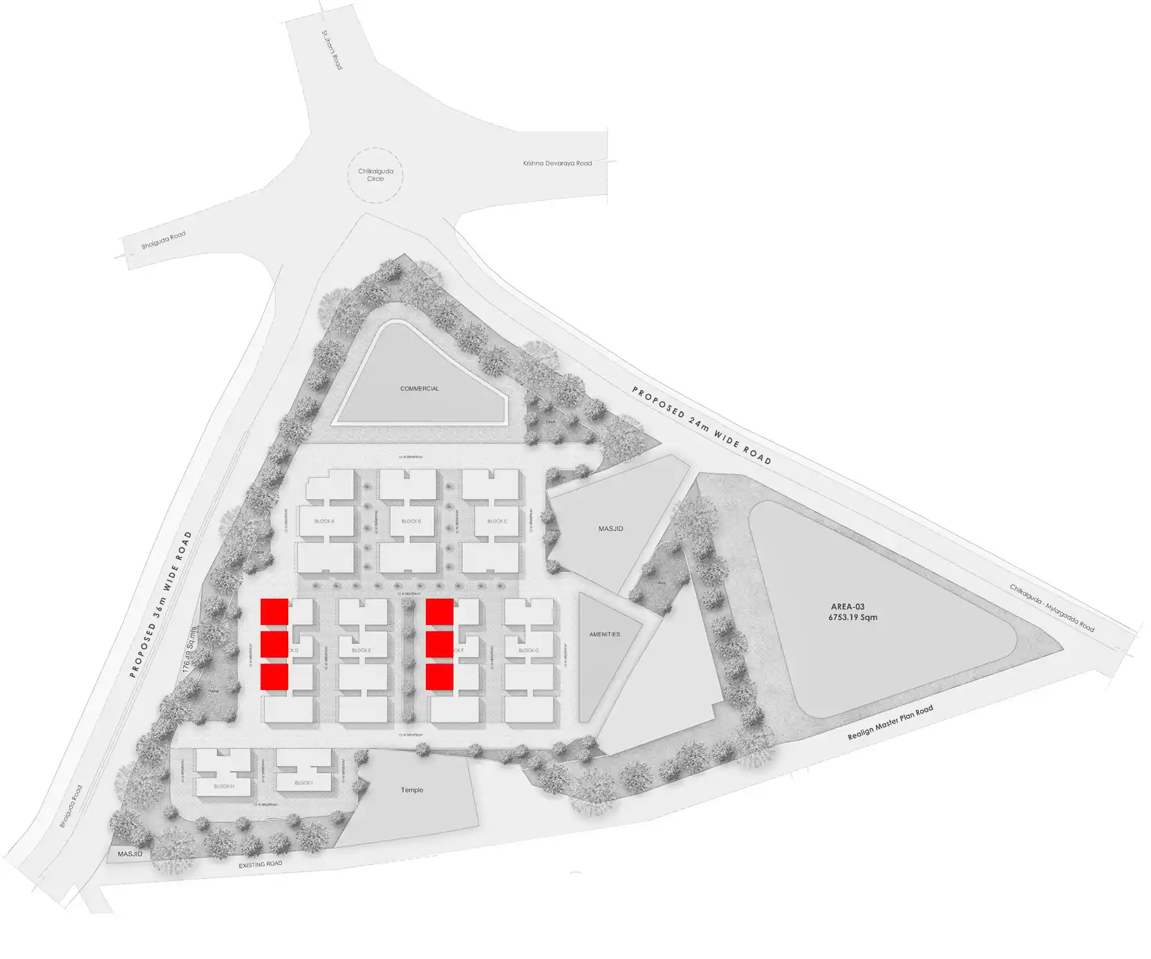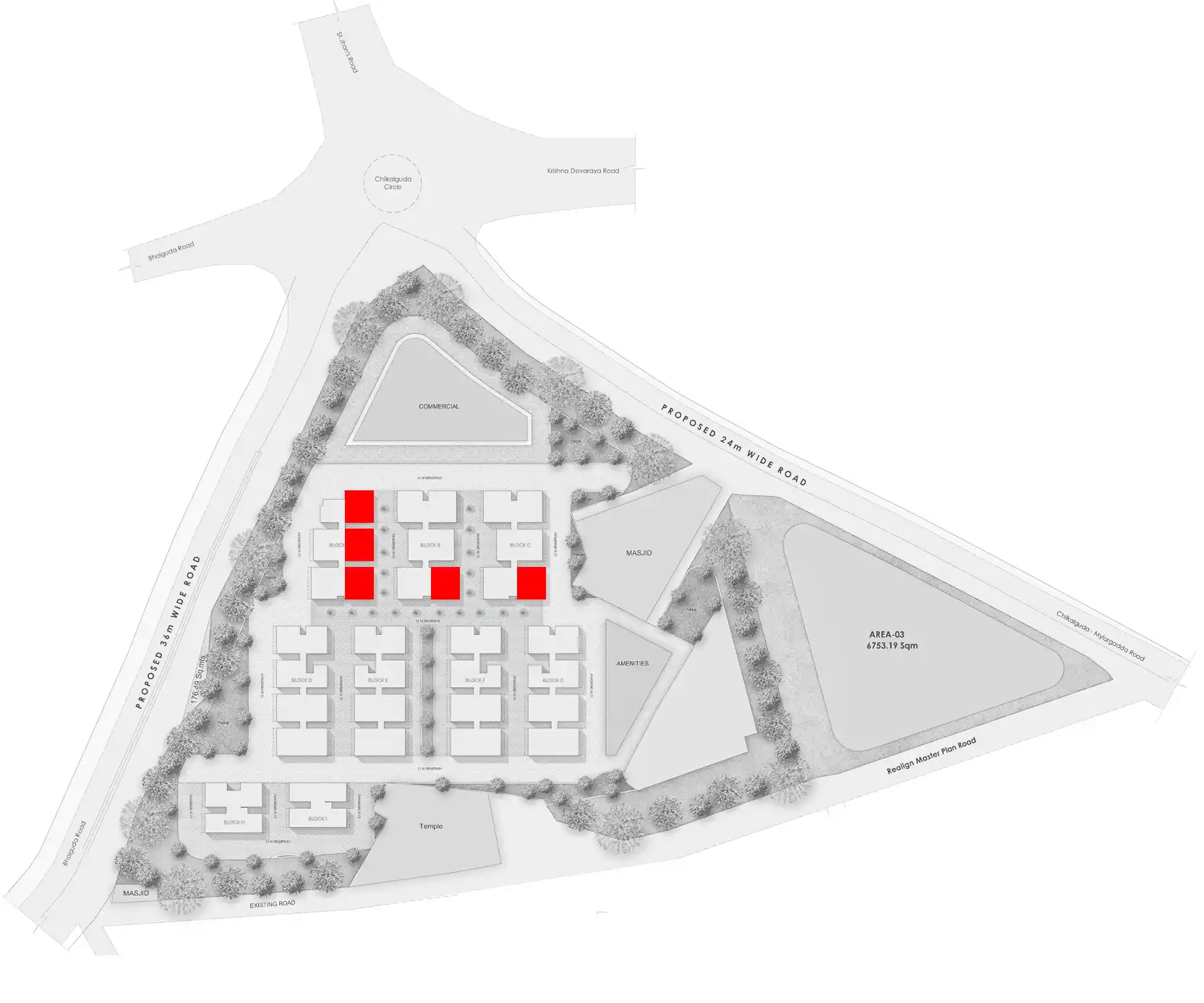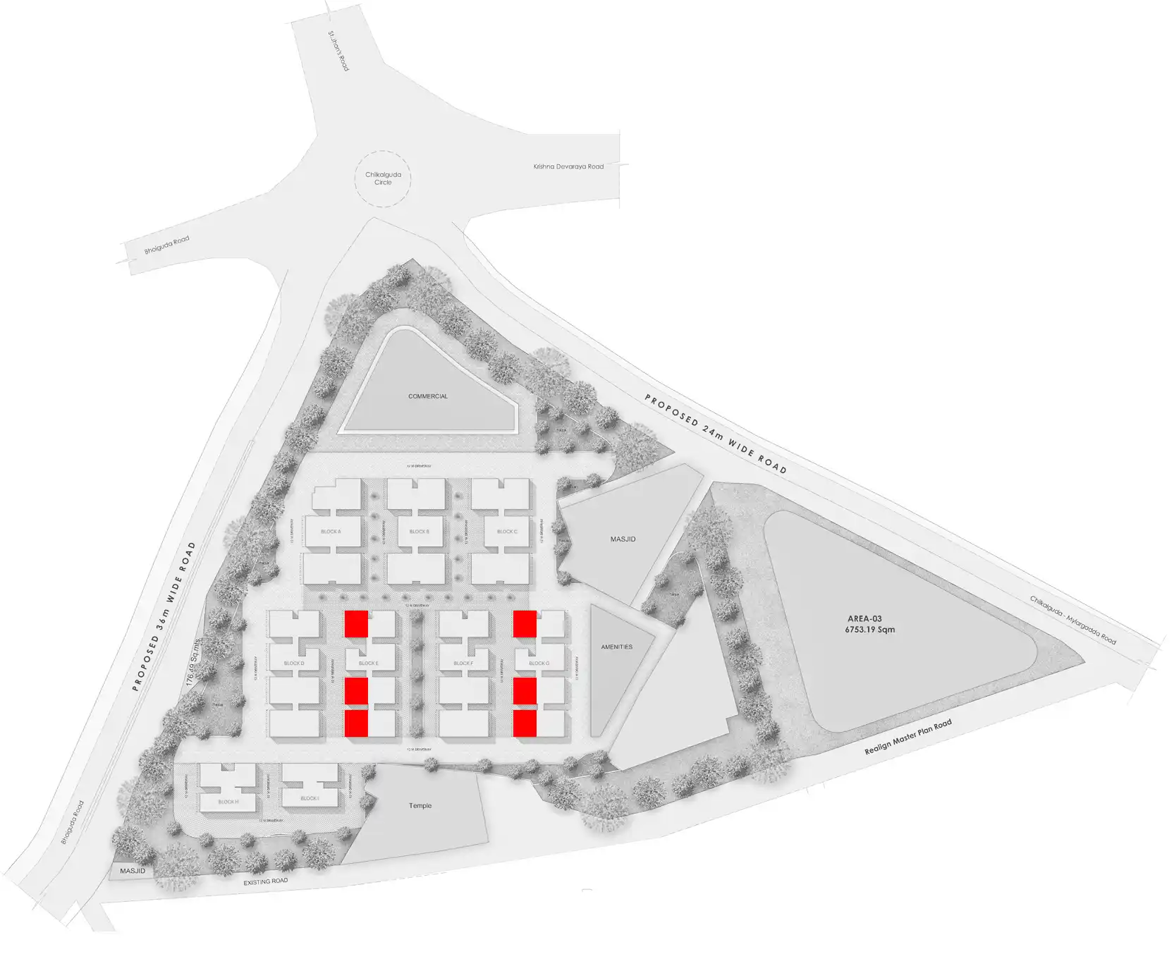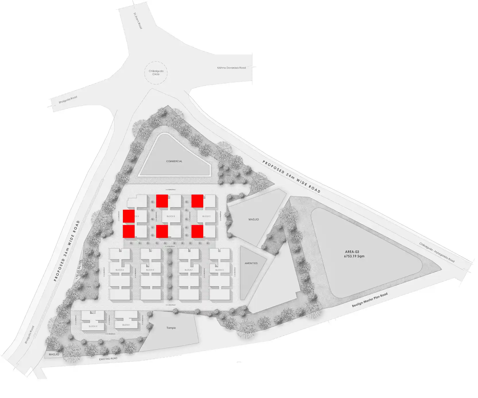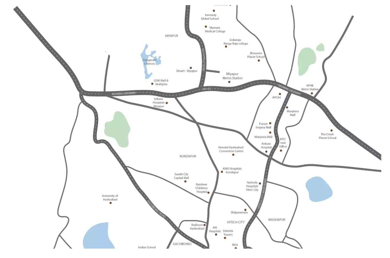 The project’s strategic positioning brings business centers like Ranigunj and Begumpet within immediate reach, catering to professional needs. Adding to the convenience, prominent hospitals including KIMS, Sunshine, Apollo, and Yashoda are in close proximity, ensuring healthcare accessibility.